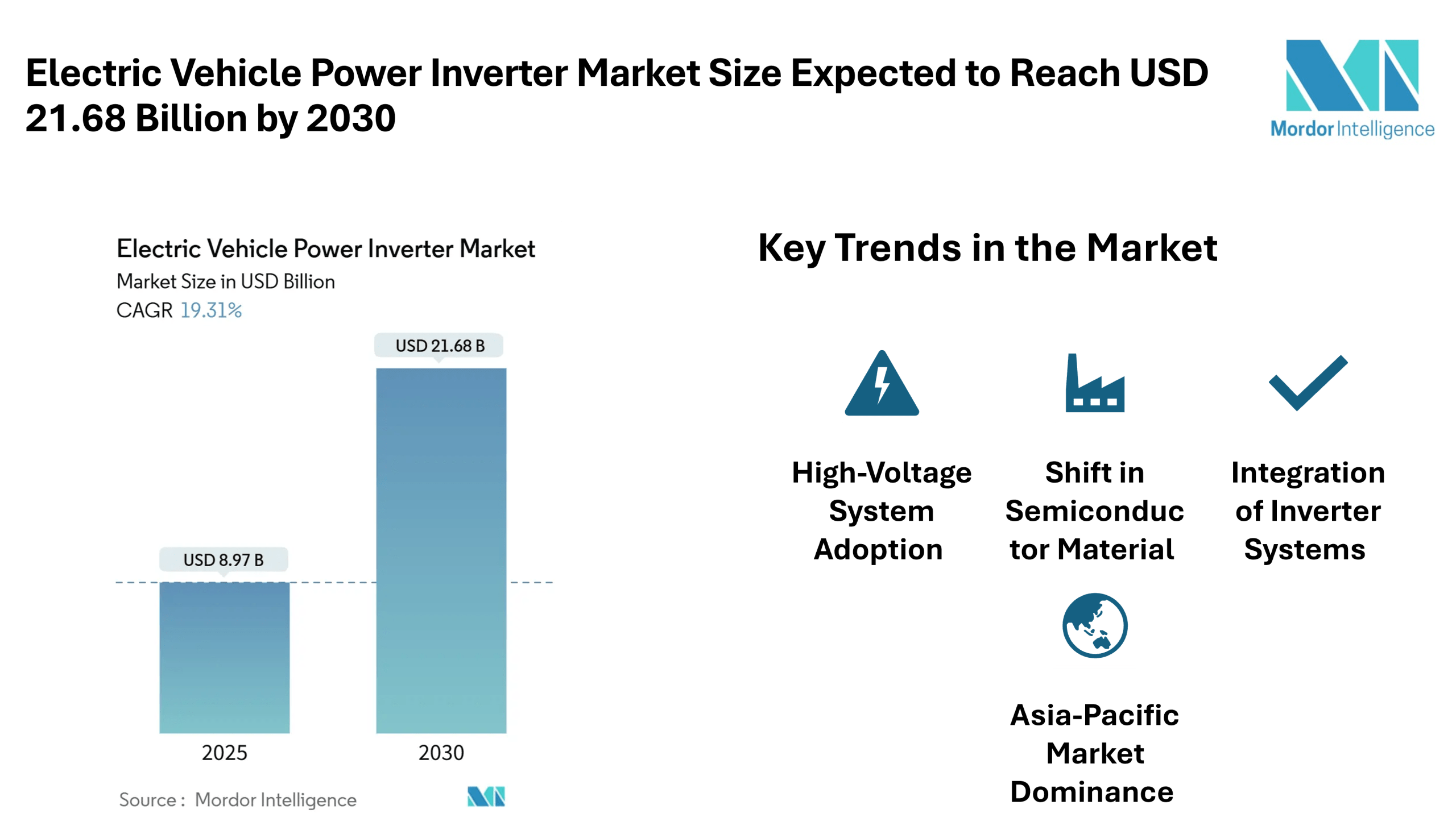 Electric Vehicle Power Inverter Market Size Expected to Reach USD 21.68 Billion by 2030, Driven by Rising Electrification and Semiconductor Advances – Mordor Intelligence
